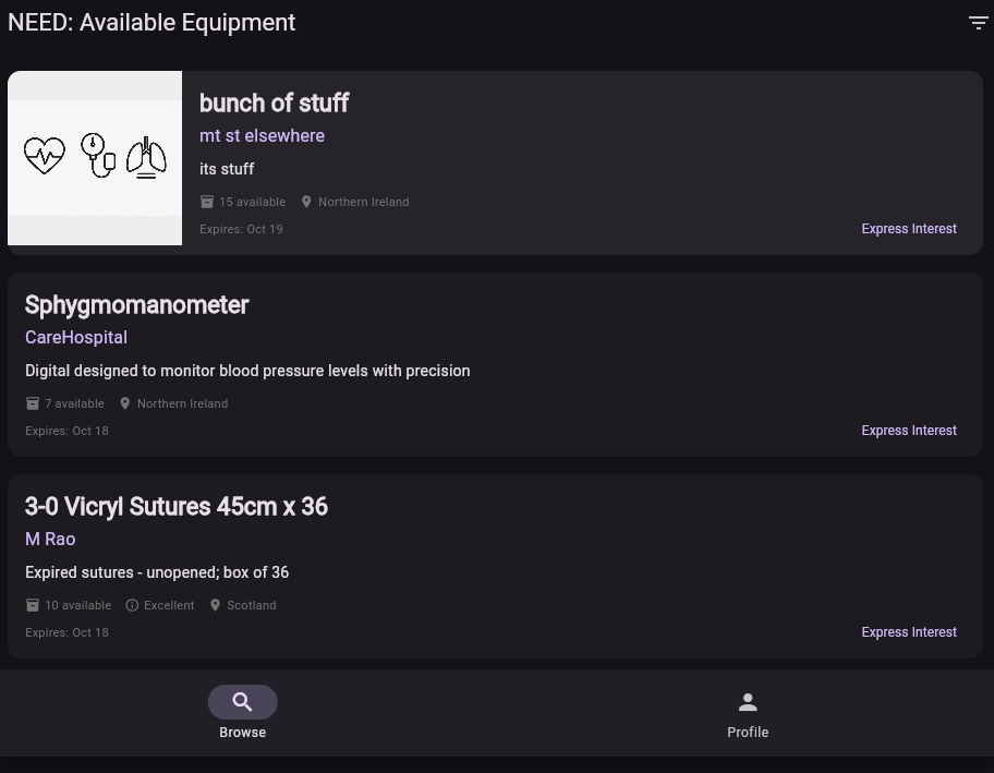- National database for expired equipment for healthcare student societies