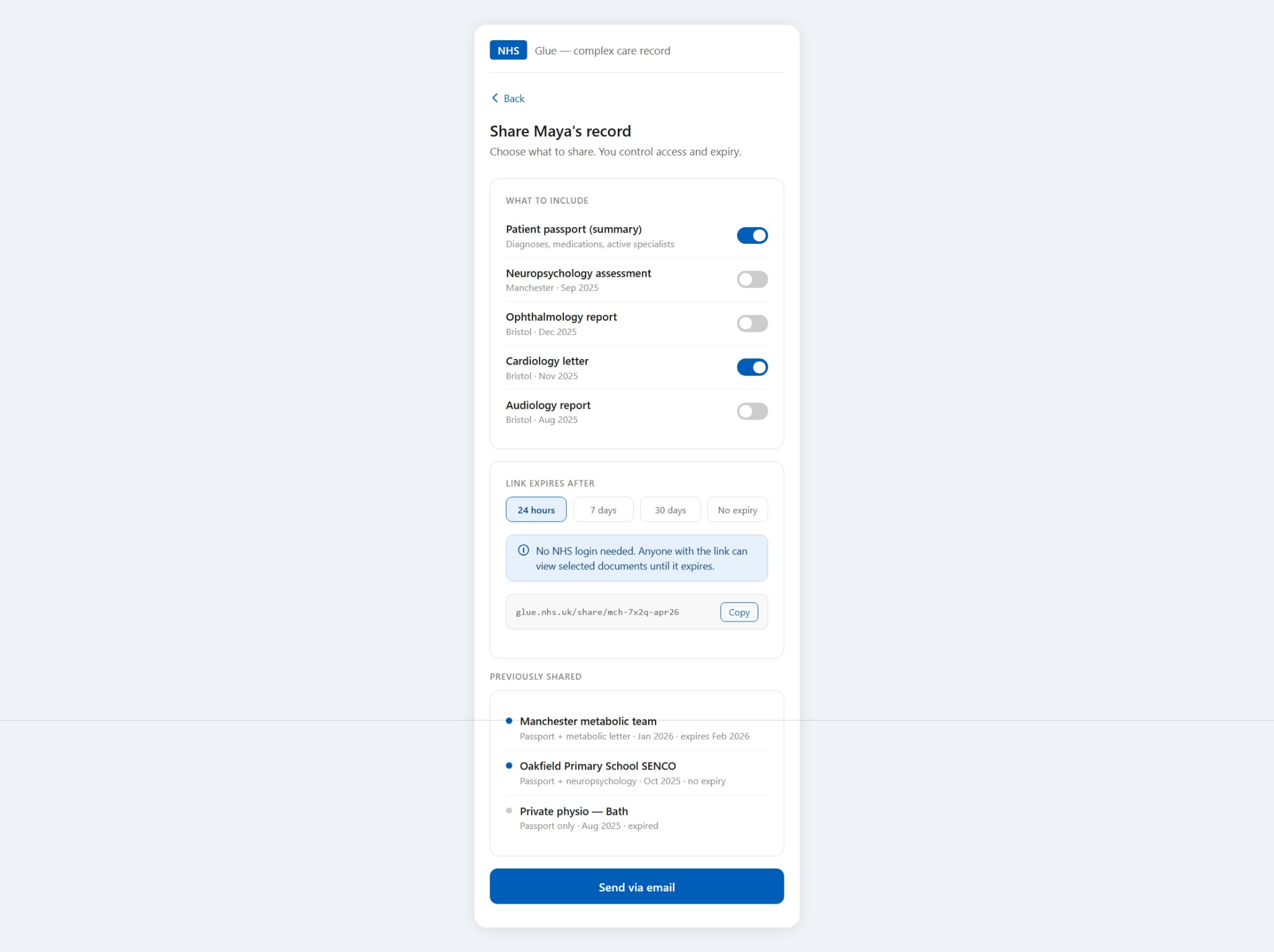- Glue - the gathered letters universal exchange - enables patients, parents and carers to organise and share documents with other professionals
